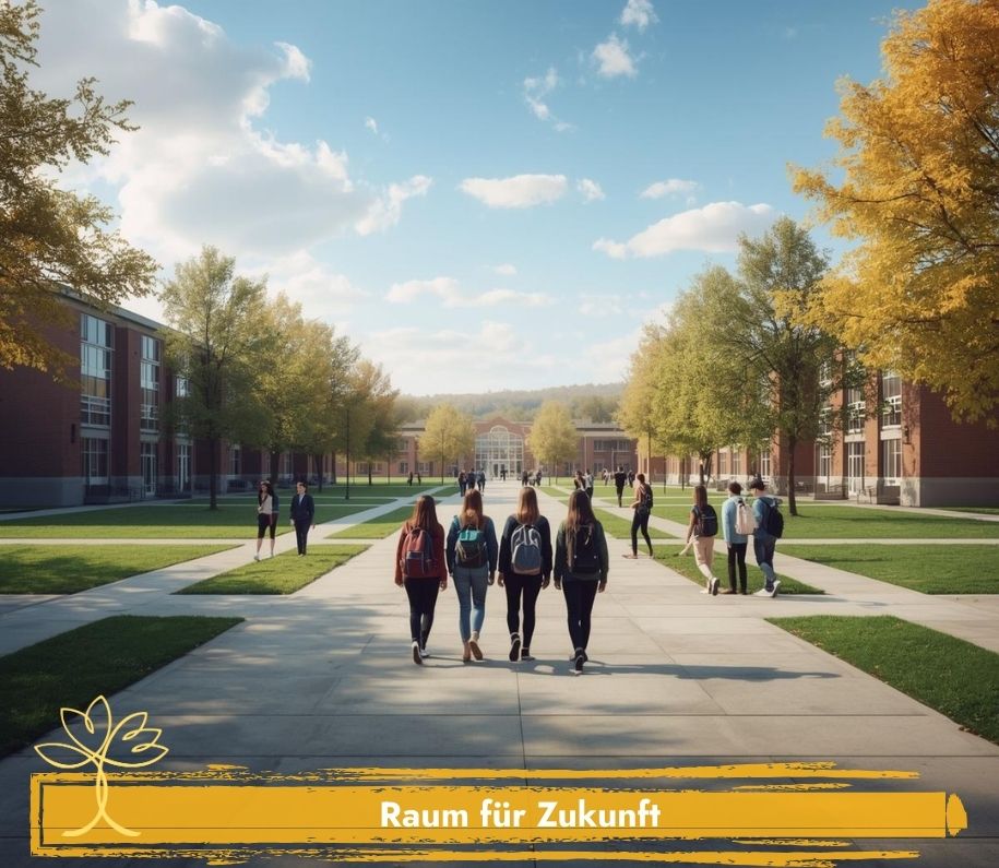 Stelle dir unsere Schule als einen Ort vor, an dem Lernen nicht an der Klassenzimmertür endet, sondern hinaus in die Welt führt. Einen Ort, wo unsere Schüler:innen nicht nur Aufgaben lösen, sondern Fragen stellen, die die Zukunft bewegen.